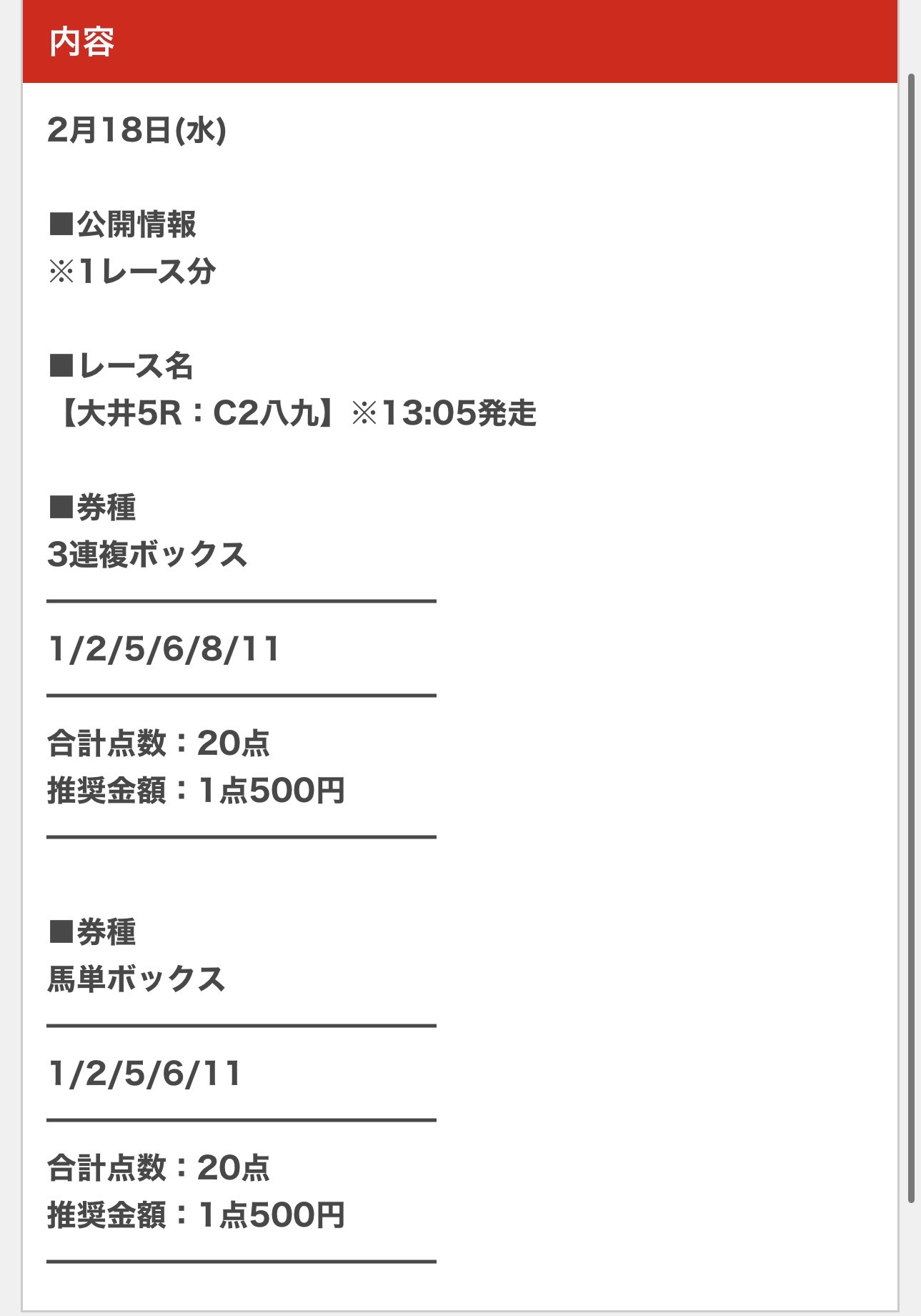 今日の無料予想は雲取賞ではなく大井5Rでした(笑)
