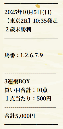 馬券代は1点500円の総額5000円