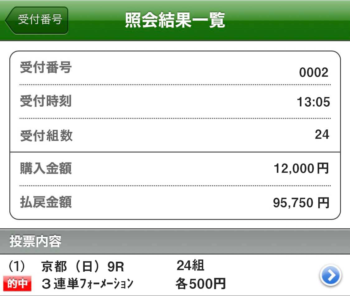 馬券代総額:3万6000円