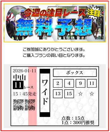 早速新規登録を済ませて13日(土)の無料予想に参加をしてみたら