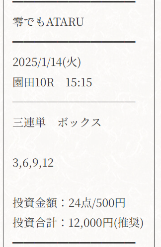 週明けも好調で12-6-9の馬券で844,750円もとれました!